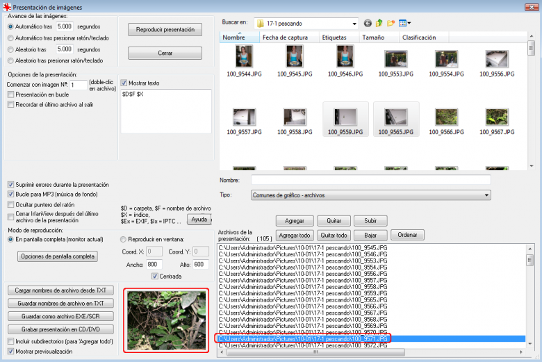 • Aleatorio tras … segundos – Cada vez que transcurra el período indicado la presentación continuará con una imagen de la lista elegida al azar.