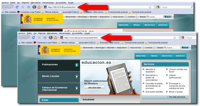 ¿Notas algún parecido? ¡Sí! ¡Se trata del mismo sitio! Simplemente, en el primer caso estamos accediendo a través del dominio y en el segundo usamos su dirección IP.