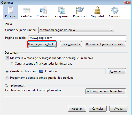 Cuando una página se convierta en tu principal referencia, por ejemplo, la página del buscador Google o de tu correo personal, puedes convertirla en la página de Inicio de Mozilla Firefox.