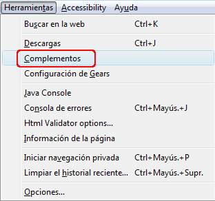 Puedes obtener muchas más prestaciones de Mozilla Firefox si recorres la lista de complementos para añadirle. Usa la opción Complementos del menú Herramientas.