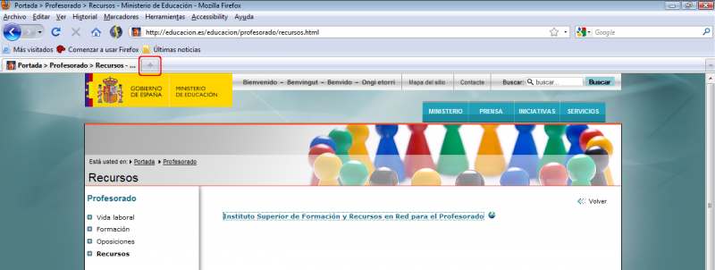 Ahora puedes escribir la dirección en la barra de herramientas de navegación, manteniendo en la primera pestaña la página de recursos del Ministerio.
