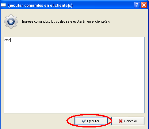 Se abrirá una ventana denominada Ejecutar comandos en el cliente(s):