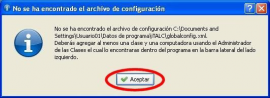 Cuando ejecutemos iTALC por primera vez, aparecerá una ventana con el mensaje “No se ha encontrado el archivo de configuración …….globalconfig.xml”, indicando que aún no hemos creado ninguna clase en nuestra red, una vez creada alguna clase, no volverá a aparecer este mensaje.