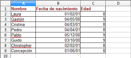 Una hoja de cálculo está conformada por un conjunto de filas y columnas. En Calc, cada columna lleva como nombre una letra, y cada fila un número.