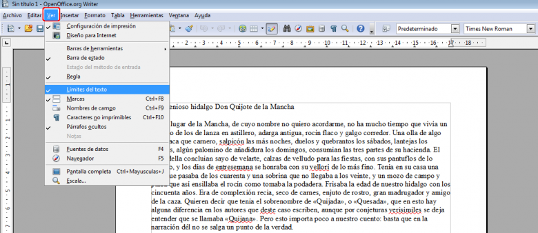 Abre la aplicación Writer desde el menú de programas, o escoge OpenOffice.org y haz clic en Documento de texto.