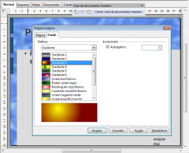 También puedes usar un degradado, escogiendo la opción Preparar página, pestaña Fondo.