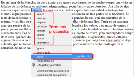 Existe la posibilidad de que la palabra no sea un término en español, que esté escrita de forma incorrecta o que simplemente, Writer no la tenga en su diccionario y deba incorporarla. Haz clic con el botón derecho del ratón sobre la palabra, y escoge uno de los términos propuestos para cambiarla, Ignorar para no hacer nada (por ejemplo, en el caso de haber escrito un término deformado adrede o una palabra en otro idioma), Ignorar todo para que no se señale ninguna aparición de este término en este texto, o Incluir para que se añada al diccionario y no vuelva a señalarse como palabra incorrecta.