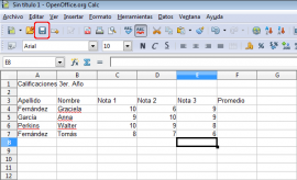 Activa la celda A4 y comienza a escribir los apellidos de un grupo de estudiantes. Pulsa Intro para escribir hacia abajo, o TAB para escribir hacia la derecha. No escribas el promedio de las notas.