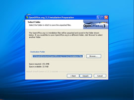 Descomprimir (Deskonprimitu) sakatu behar duzu, OpenOffice.org guneko instalazio-fitxategiak exekuta daitezen.