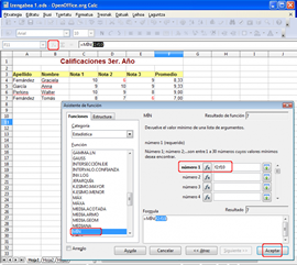 Egin klik Aceptar (Onartu) botoiaren gainean. Funtzioa txertatu duzun tokian, adierazitako blokeko kalifikazio txikiena zein den ikusiko duzu.