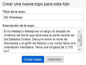 La primera vez que agreguemos una fotografía a una exposición tendremos que escoger un título y una descripción de la exposición: