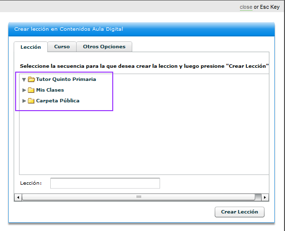 Agregar lecciones (Ikasgaiak gehitu). Jada sortuta dauden sekuentziak dituzten karpetak ireki ditzakegu, gure eskolan sartzeko, eta ikasleek ikusi eta landu ditzaten. (Prozedura horri buruzko xehetasunak 7. jardueran emango dira).