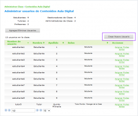 Ikasleei eskolan alta emateko (horixe da jardueraren helburua), egin klik Administrar usuarios botoian.