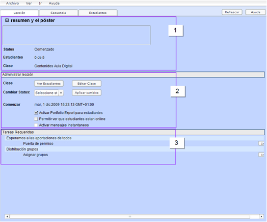 Lección (Ikasgaia), Secuencia (Segida) eta Estudiantes (Ikasleak).