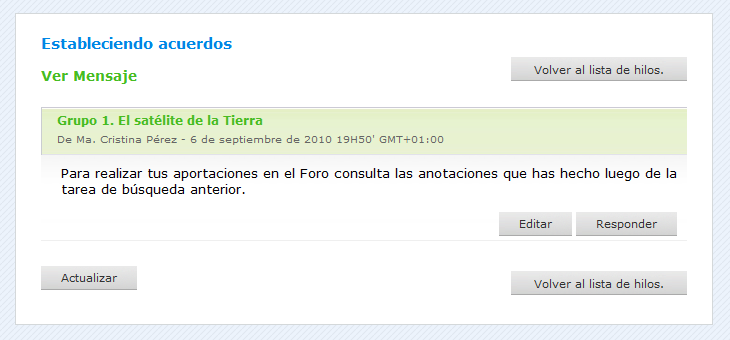 en la que se visualizan los distintos aportes al Foro y, en la parte inferior, aparecen los botones Editar,