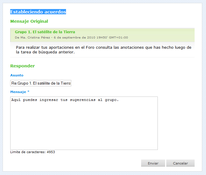 Para enviar el mensaje a todo el grupo, hacer clic en el botón Enviar.